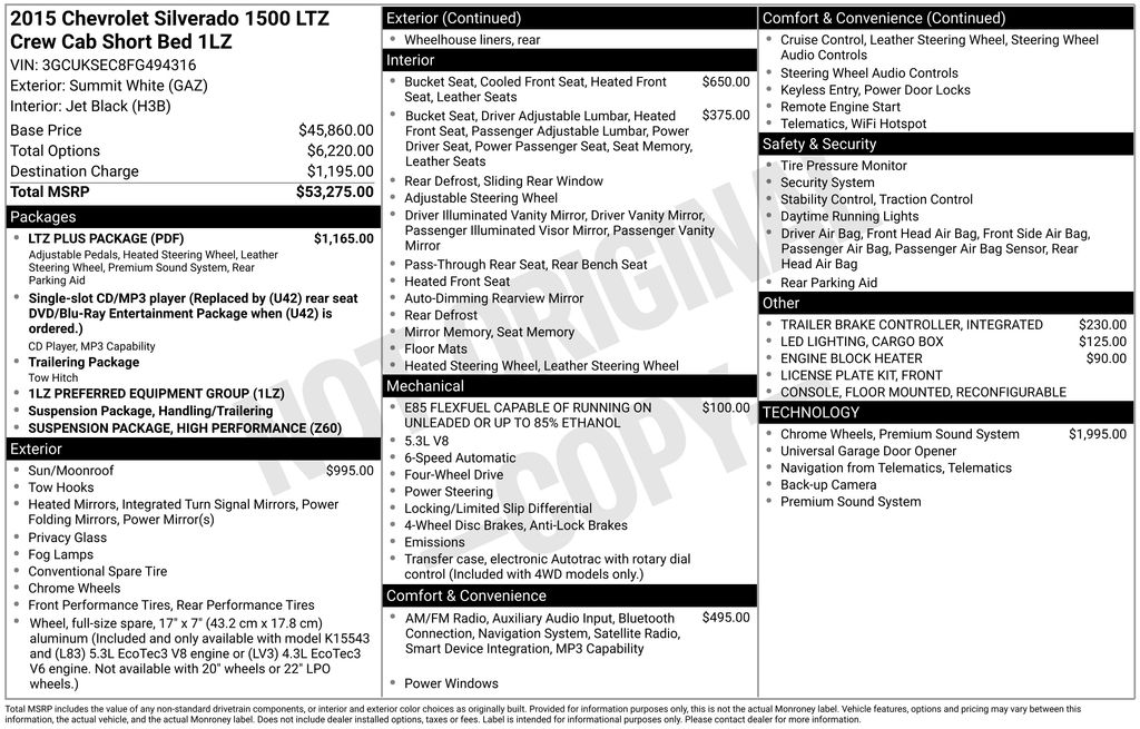 This 2015 Chevrolet Silverado 1500 LTZ 1LZ is a well-equipped and versatile full-size pickup that is sure to impress. With its powerful EcoTec3 5.3L V8 Flex Fuel engine, 4-wheel drive capability, and impressive fuel efficiency, this Silverado is ready to handle any task you throw its way.