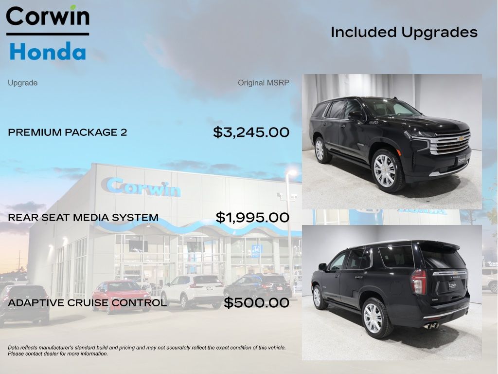 COME ON IN TO CORWIN Honda FOR OUR BLACK FRIDAY PRICING ALL MONTH LONG! TREMENDOUS LINEUP ON OUR OVER 200 PRE-OWNED VEHICLES AT ONE LOCATION!!! Priced below KBB Fair Purchase Price! 2023 Black Chevrolet Tahoe High Country 4WD CARFAX One-Owner.