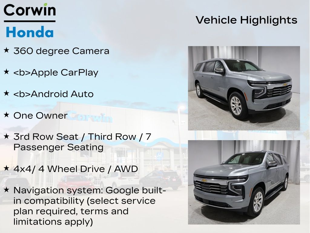 SAVE BIG IN 2026 WITH A GREAT DEAL ON ONE OF OVER 200 PRE-OWNED VEHICLE'S AT CORWIN HONDA. 2025 Sterling Gray Metallic Chevrolet Suburban Premier 4WD CARFAX One-Owner.