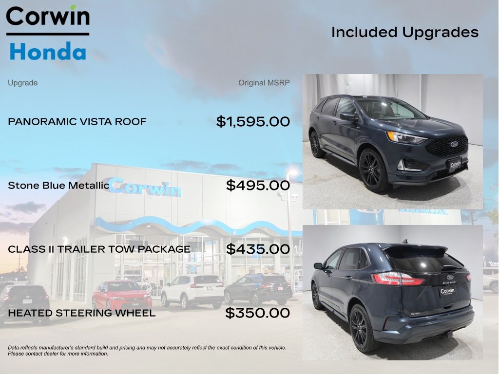 COME ON IN TO CORWIN Honda FOR OUR BLACK FRIDAY PRICING ALL MONTH LONG! TREMENDOUS LINEUP ON OUR OVER 200 PRE-OWNED VEHICLES AT ONE LOCATION!!! Priced below KBB Fair Purchase Price! 2024 Stone Blue Metallic Ford Edge ST Line AWD Clean CARFAX.