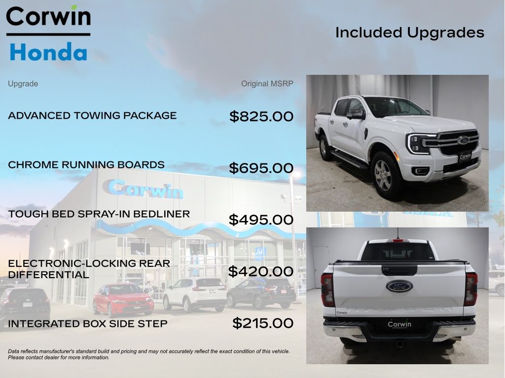 Powered by the potent EcoBoost 2.3L I4 GTDi DOHC Turbocharged VCT engine and paired with a responsive 10-Speed Automatic transmission, this Ranger Lariat delivers impressive performance and efficiency, with an EPA-estimated 20 city / 24 highway MPG. The 4WD system ensures you can tackle any terrain with confidence, while the advanced towing package and integrated box side step make hauling and loading a breeze.