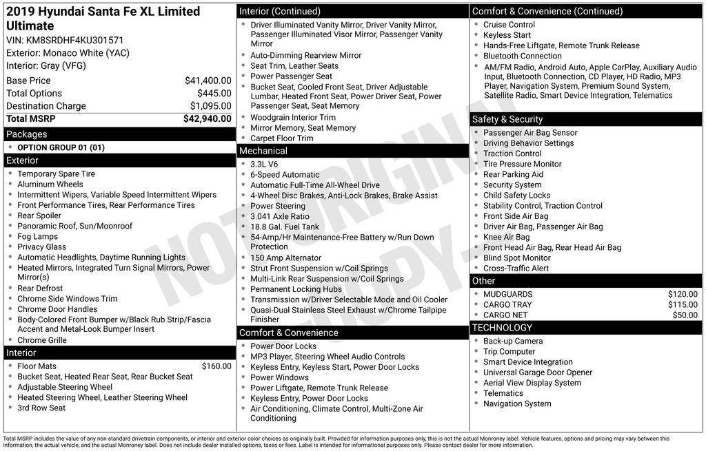SAVE BIG IN 2026 WITH A GREAT DEAL ON ONE OF OVER 200 PRE-OWNED VEHICLE'S AT CORWIN HONDA. Recent Arrival! 2019 Monaco White Hyundai Santa Fe XL Limited AWD