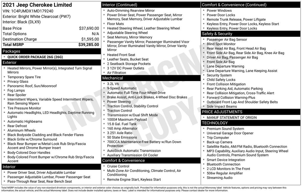Discover the exceptional 2021 Jeep Cherokee Limited, a premium SUV that blends rugged capability with refined sophistication. This well-equipped model offers an impressive array of advanced features to elevate your driving experience.