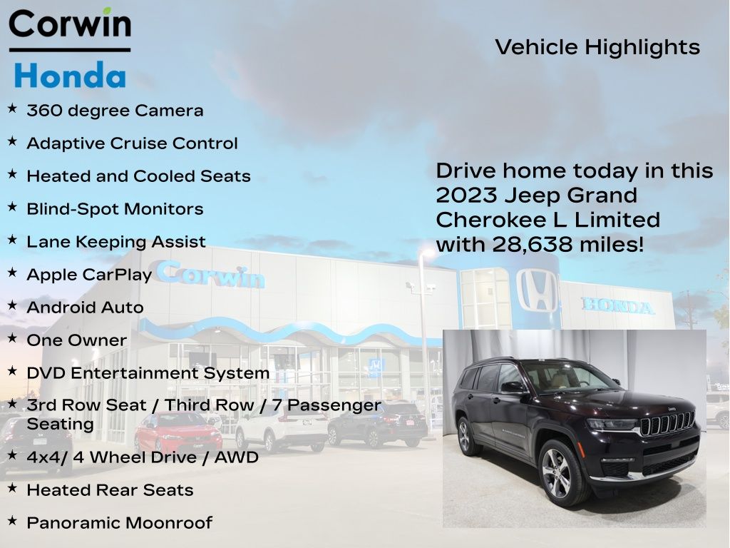 As a one-owner vehicle with just 28,638 miles, this 2023 Jeep Grand Cherokee L Limited represents an exceptional opportunity to own a meticulously maintained, feature-rich SUV. Experience the perfect blend of luxury, capability, and convenience â" schedule a test drive today and discover the difference for yourself.