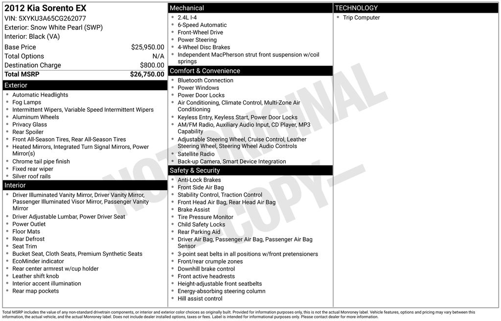 Experience the exceptional value and versatility of this 2012 Kia Sorento EX. Visit our showroom today and let us demonstrate how this remarkable SUV can enhance your driving experience.