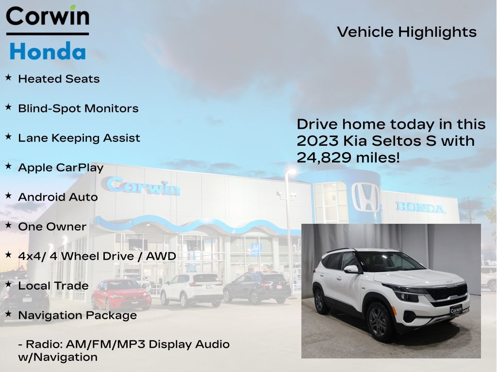 Discover the perfect balance of style, comfort, and capability in the 2023 Kia Seltos S. This versatile crossover SUV is designed to elevate your driving experience, whether you're navigating the city streets or exploring the open road.