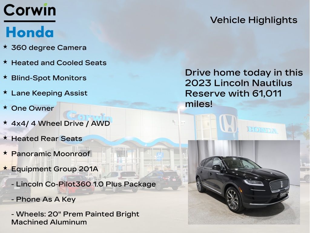 Whether you're navigating the bustling city streets or exploring the open road, this 2023 Lincoln Nautilus Reserve is the perfect companion. With its exceptional blend of luxury, technology, and capability, it's the ideal choice for the discerning buyer seeking a truly remarkable SUV.