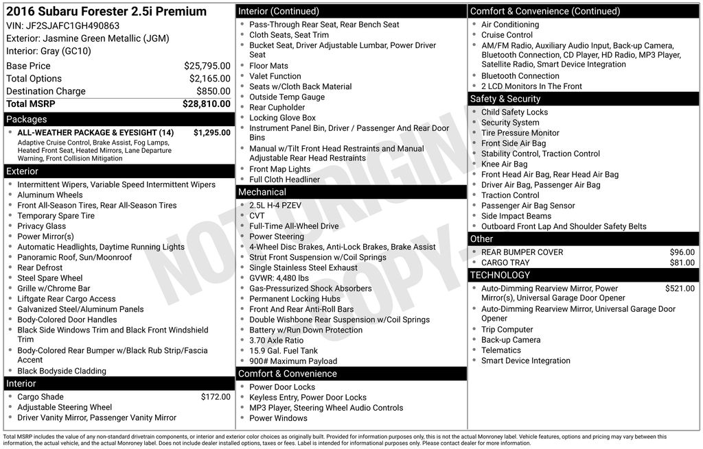 Discover the perfect blend of utility, technology, and style in this meticulously maintained 2016 Subaru Forester 2.5i Premium. This versatile SUV is ready to elevate your driving experience with its impressive array of premium features and capabilities.