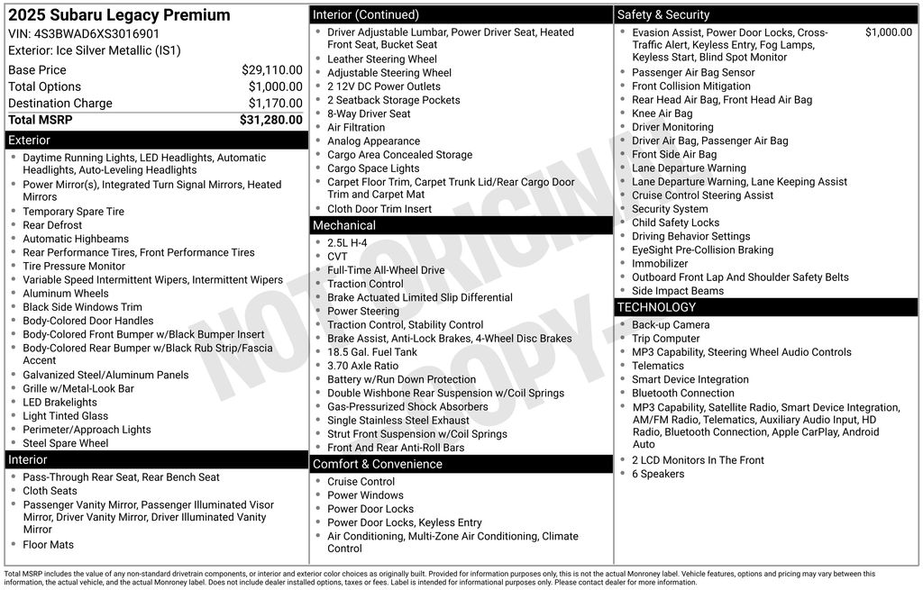 Discover the perfect balance of style, performance, and technology in the 2025 Subaru Legacy Premium. Experience the difference that a well-equipped, one-owner sedan can make in your daily commute and weekend adventures. Visit our showroom today to take this exceptional vehicle for a test drive and see how it can elevate your driving experience.
