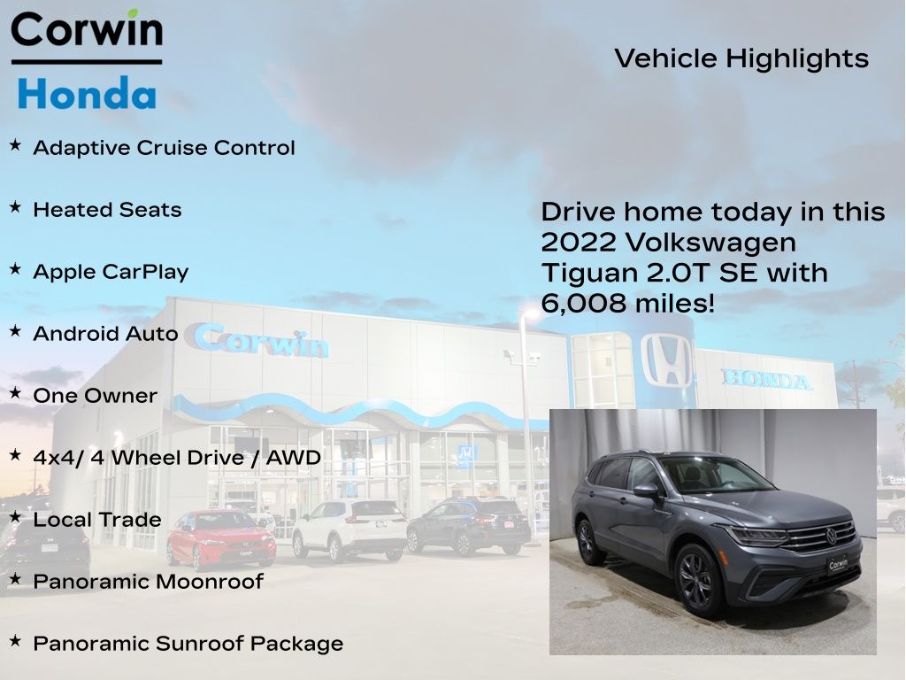 We invite you to visit our showroom and discover the exceptional value and driving dynamics of the 2022 Volkswagen Tiguan 2.0T SE. Let us demonstrate how this SUV can elevate your driving experience and become an integral part of your lifestyle. We're confident that once you take it for a test drive, you'll be captivated by its impressive capabilities and refined elegance.